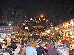 THE FEAST OF SAN GENNARO: In 1927, Neapolitans in Little Italy staged the first Festa San Gennaro in the history of New York. Over the following decades it became internationally famous for food (fried calamari, sausage and pepper sandwiches, zeppoles, etc.) and fun (Ferris wheel, barkers calling to pitch a ball or bet on which hole a mouse will disappear to, card games, souvenirs, etc.). It was the most concentrated Southern Italian experience in the country each September�that is, until political correctness and political pressure brought San Gennaro to his knees�something a Roman furnace and beheading couldn�t.